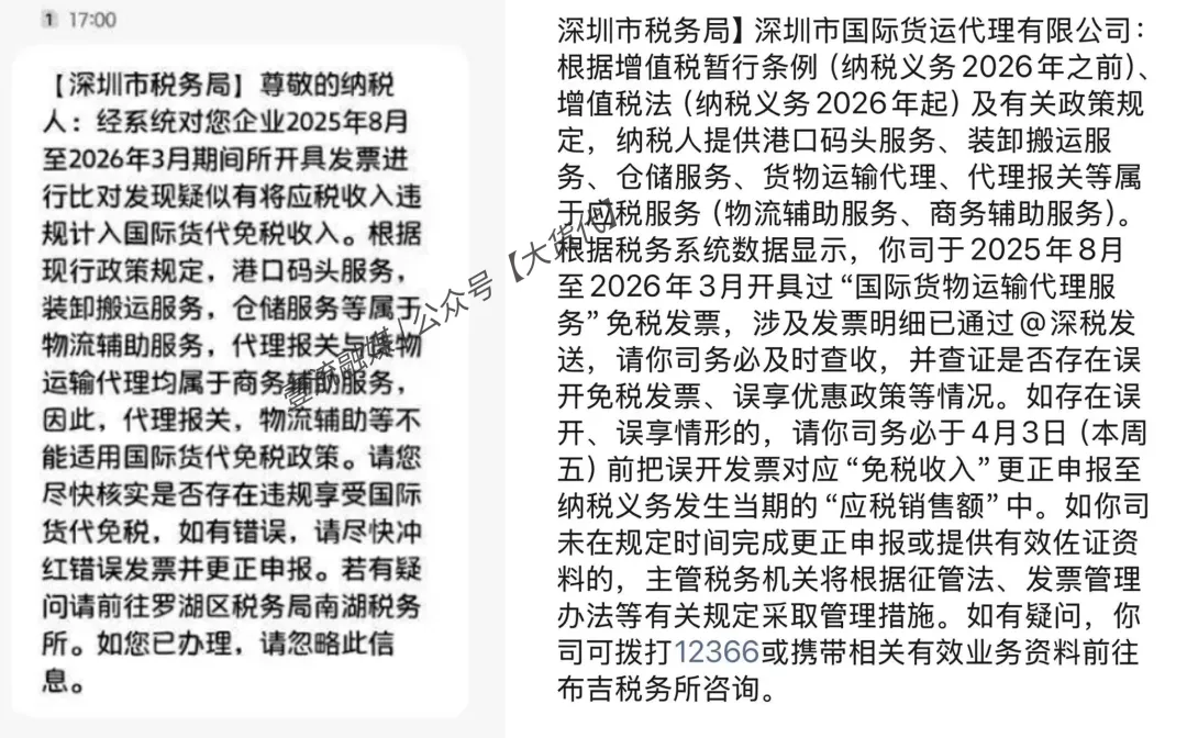 根据行业披露消息,在清明前,有多家货代收到了深圳税务部门下发的“税务核查”短信。