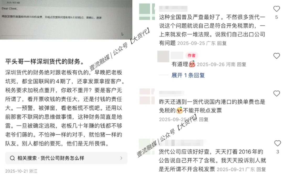 其实某种程度上来说,这也可能是在查货代不给客户开税点发票的问题...
