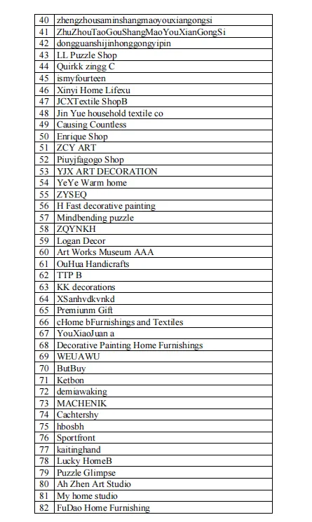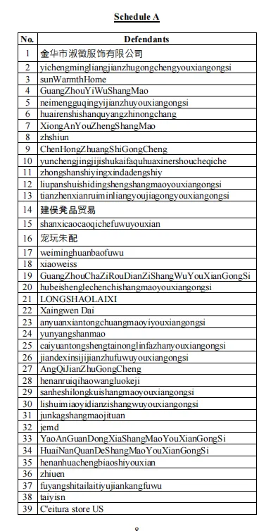 据卖家冻结反馈,我们关注到去年3月份开始维权的一组版权图在最近的立案中仍起诉了93家店铺,目前被告名单已公开。