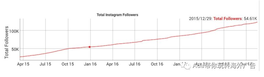 比如使用socialblade判断网红的粉丝的有效性,只需将目标网红的YouTube,Twitter或Instagram地址填到网站,然后查看结果。如果它有一个相当缓和的增长斜率,如下图所示,那么你的目标网红很可能没有购买任何粉丝。