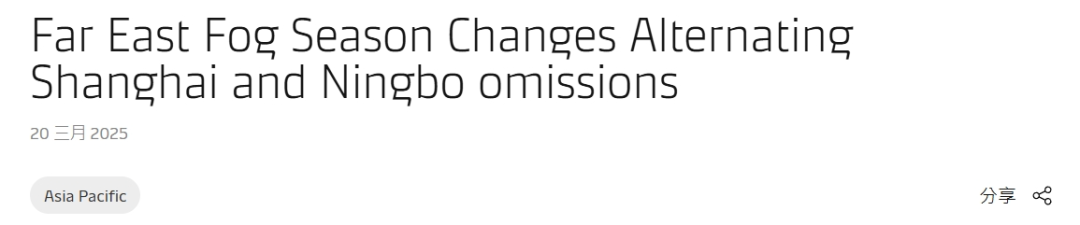 3月20日,马士基(MSK)发布公告称,将在上海港和宁波港之间启用轮流停运。