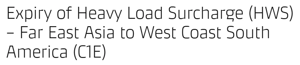 日前,马士基宣布将取消从远东亚洲至南美洲西海岸、中美洲及加勒比地区,针对20英尺干货集装箱和40NOR(40英尺干冻柜)的重货附加费(HWS)。自2026年1月15日价格计算日起,直至另行通知,该贸易航线将不再收取重货附加费(HWS)。