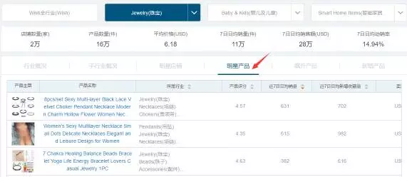 在Wish平台的逻辑中,搜索被淡化,推送被提到核心位置。很多商家的注意力也都集中在产品的wish标签打法上。因为店铺的概念被弱化,所以很少会有人关注竞争对手,知道他们的产品卖的怎么样吗?除了跟你同款的产品外,还有什么产品是热销的? 超级店长跨境版的wish数据工具当中,除了有对行业数据的全局统计以外,还有专门针对店铺和产品的统计,可以清晰明了的看到对手店铺内的热款产品、飙升产品的详细数据。 产品数据 首先,我们可以通过筛选来锁定我们的行业,选择“明星产品”来圈定同行业中热卖产品。 关注某个热卖产品,就可以查看这个产品的价格,运费,产品描述以及卖家填写的tag和wish赋予的tag。 店铺分析 当然,在wish平台上,某个店铺不一定只卖一类产品,可能卖衣服的店铺里也会卖手表。我们可以通过监控不同的店铺去研究对方到底哪些东西好卖,哪些产品滞销,这对wish选品也非常重要。 关注店铺之后,就可以看到店铺热销产品,新增产品。热销产品表明正热门的产品,新增产品中蕴含中未来可能热卖的产品。 当然,如果想要看到更加细致的数据,一定要进行更精细的筛选。目前提供产品价格、上架时间、日均销量、日均收藏量、评论量、行业的筛选。卖家可以通过自定义选项,选取与自身比较匹配的竞争对手。 例如,你的产品价格在5美元附近,那么你可以选择价格在4-6美元,日均销量30或50以上产品来看看,这些卖家是如何优化tag,如何进行产品描述的。 做wish其实并不难,因为他并不需要卖家开直通车呀、做SEO优化之类的,但是同样需要保持对市场的敏感,关注行业,研究对手,提升自己。