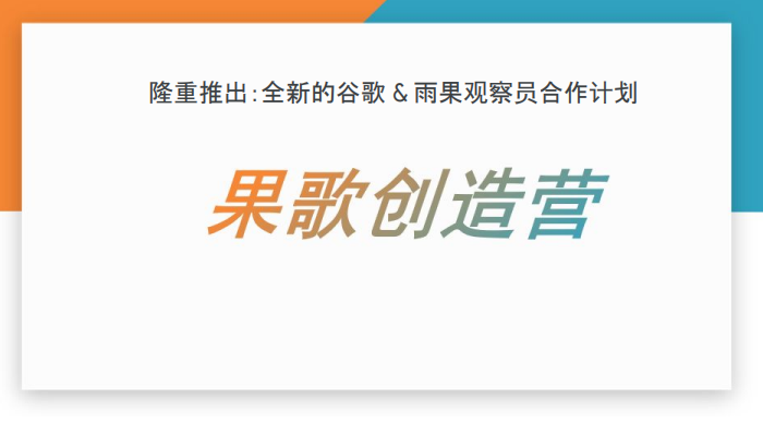 顺便介绍下目前谷歌跟雨果网隆重推出:全新的谷歌 & 雨果观察员合作计划
