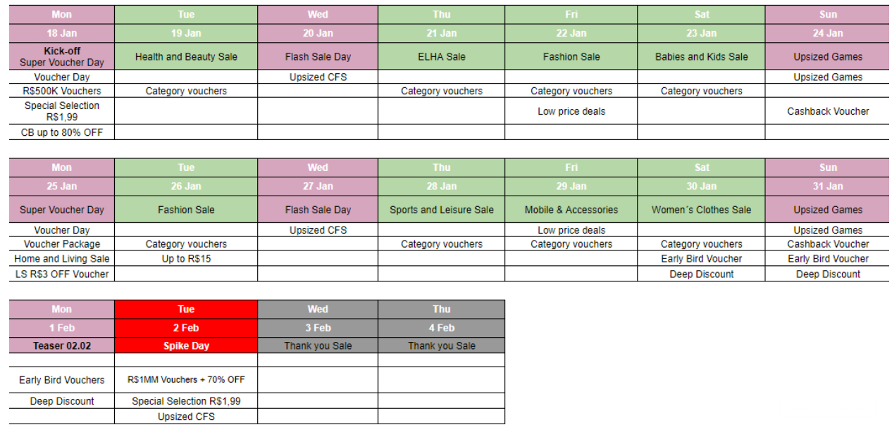 2、巴西大促活动时间表