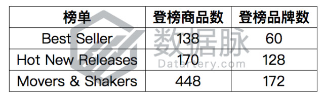 根据上周Movers & Shakers榜单上各个品牌下商品的登榜次数,我们对登榜的品牌进行了排序,其中排名靠前的五个品牌如下所示: