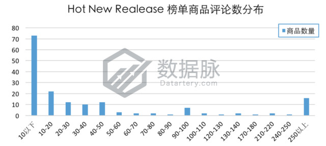 在上周登榜Office Products品类Hot New Releases榜单的商品中,单个商品拥有的最大评论数为1430.0,最小评论数为0.0条,平均评论数113.72条,评论平均星级4.58星。在上榜的商品中,大 部分商品评论数在10条以下,占比达到了42.94%;此外,上周共有16款上榜商品的评论数超过250条,占上榜商品总数的9.41%。骆探长 (shujumai.com)发现,相比于前几期分析,该周进入Office Products品类Hot New Releases榜单的商品平均评论数出现了较为明显的减少,全新商品的榜单竞争力有所上升。