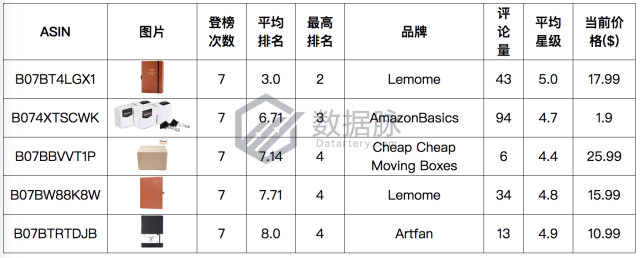 与此同时,同品牌的另一款A4日历笔记本同样在上周多次进入Hot New Releases榜单前十,取得了7.71的平均排名,位列综合排名第四。