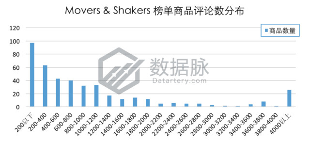 在上周登榜Office Products品类Movers & Shakers榜单的商品中,单个商品拥有的最大评论数为11392.0,最小评论数为4.0条,平均评论数1148.05条,评论平均星级4.36星。其中,评论数在200条以下的商品相对较多,占上榜商品总数的21.65%;同时有14.06%的商品评论数在200条至400条之间。此外骆探长 (shujumai.com)发现,上周有多达26款登榜商品的评论数超过了4000条,占上榜商品总数的5.80%。相较于前几期分析,该周上榜商品的整体 评论数有所提升,老牌商品再次对BSR榜单造成了较强的冲击。