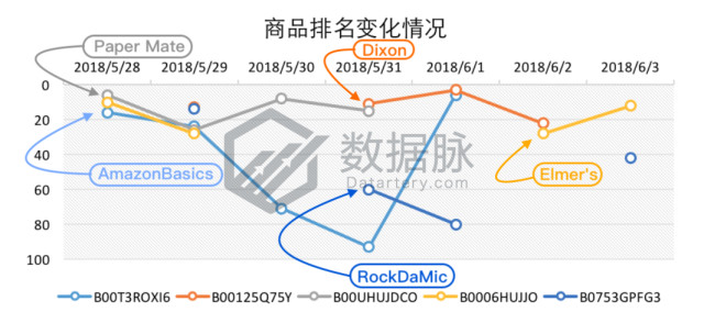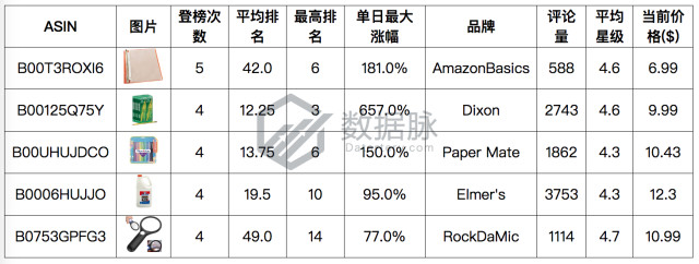 而在上周进榜4次的几款商品中,来自品牌Dixon的铅笔96件套套装同样有着相对突出的榜单表现,在一周中成功创下了BSR单日最大涨幅657%的不俗成绩,位列该周商品综合排名第二。