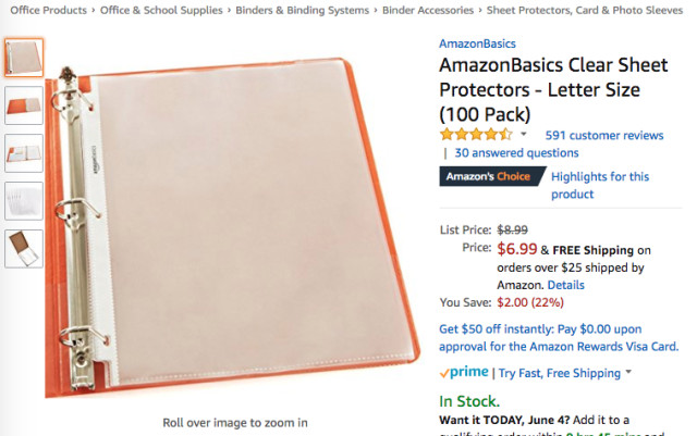 可以看到,在上周Office Products品类的Movers & Shakers榜单中,亚马逊自营品牌AmazonBasics的一款文件夹表单保护套产品成为了一周中的“榜单霸主”,自5月28日开始连续五天进入榜单,并于6月1日一度跻身Movers & Shakers榜单第六,稳坐商品综合排名首位。