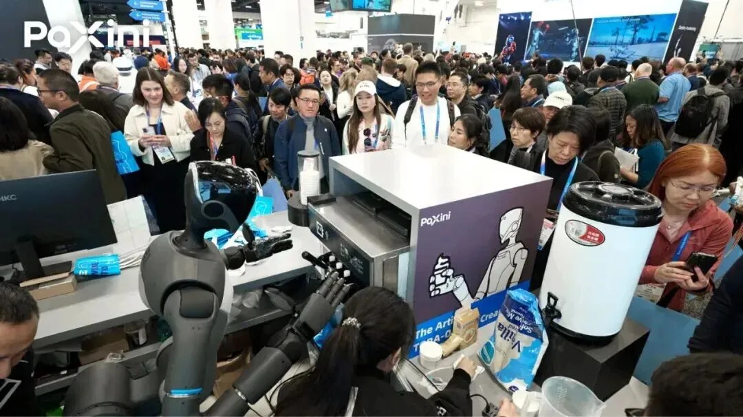 帕西尼在展会现场搭建完整场景化展台,携TORA-ONE人形机器人、多维触觉传感器、全栈技术矩阵亮相,现场演示冰淇淋制作全流程,通过接杯、打料、精细取放等比拟人类的操作,直观展示触觉感知与精细操作能力,让海外客户“眼见为实”。此次参展不仅收获大量行业关注,更直接实现与英伟达、Meta等全球头部科技企业的现场对接,敲定深度合作意向,为进入北美核心供应链奠定基础。