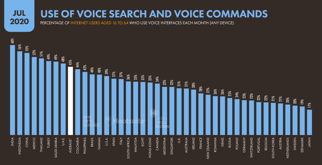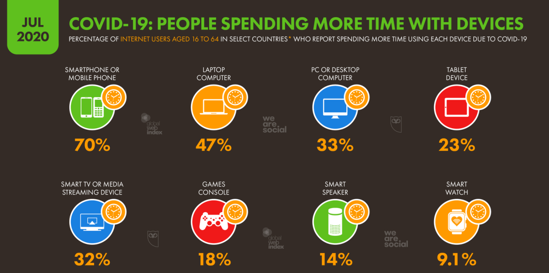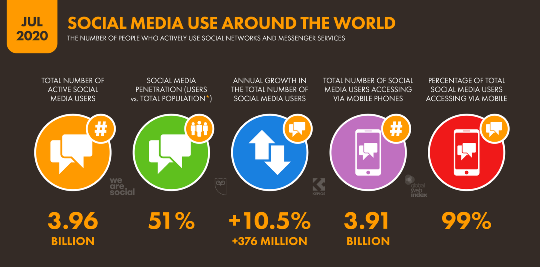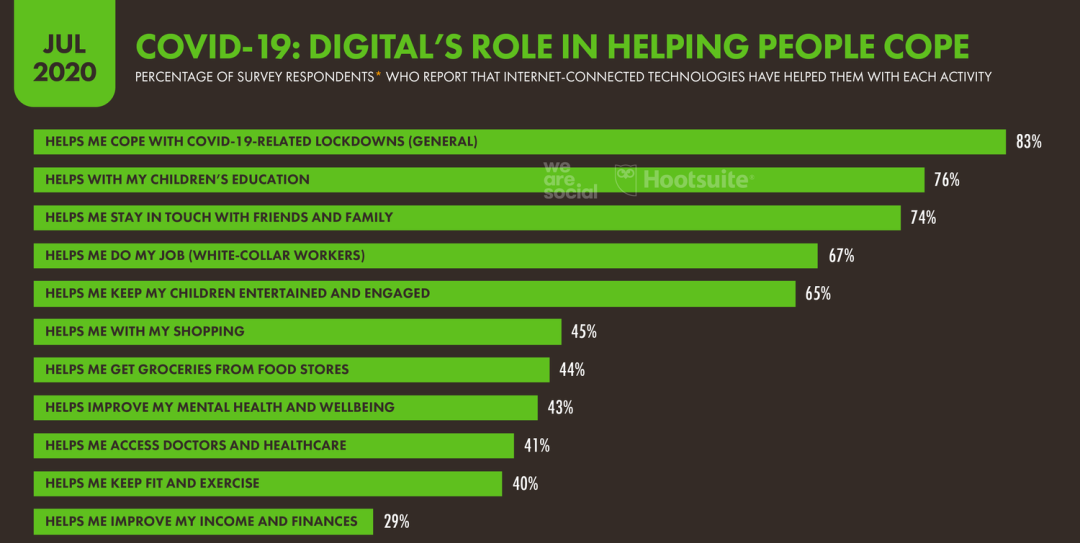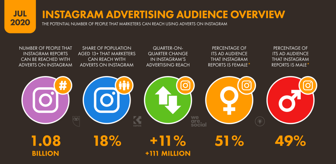 全球有超过一半的人正在使用社交媒体 在过去一年中,社交媒体的用户数量增长超过了10%。截至2020年10月初,全球共有39.6亿人正在使用社交媒体。这也是全球社交媒体用户首次达到全球一半人口的规模。在过去12个月中,每天平均有超过100万人首次使用社交媒体,相当于每秒增加近12个新用户。与此同时,全球移动端社交媒体用户正在急剧增长。 全球社交媒体活跃人数 用户使用社交媒体的时间增长 最新的报告显示,尽管许多国家取消了社交隔离禁令,但用户在互联网冲浪的时间仍在持续增长。与疫情发生之前相比,70%的互联网用户花费更多时间在手机上,而50%的用户花费更多时间在笔记本电脑上。 因疫情影响,用户在各项设备上花费时间占比 同时,用户对流媒体的热爱仍在持续。超过一半的调研受访者表示,与2020年初相比,他们目前会在互联网上观看更多的电影、电视等视频节目。与此相似,40%的受访互联网用户表示,他们在使用社交媒体上花费更多的时间,而超过14%的受访者表示他们会在社交媒体上创作更多的视频内容。 因疫情影响,用户在各项活动上花费时间占比 在社交隔离禁令被实施期间,互联网给了人们更多选择,改善了他们的生活质量。80%的受访者表示,互联网帮助他们应对了疫情,使他们能够支持子女的教育(76%),与朋友和家人保持联系(74%),甚至改善了心理健康,提升了幸福感(43%)。 因疫情影响,数字化媒体在人们生活中起到的作用 用户搜索行为在不断变化 最新的数据表明,语音搜索交互功能的使用率正在急剧增加,尤其是在一些新兴的互联网市场。在中国、印度和印度尼西亚,目前有超过50%的互联网用户每个月都会使用语音搜索交互功能,而印度每10个用户中就有6个在过去30天内使用了语音交互功能。 语音搜索与语音指令功能的使用情况 除此之外,图像识别功能也越来越受到互联网用户的欢迎,尤其是年轻用户。在过去一个月中,超过33%的主流互联网用户(16岁至64岁)使用了图像识别功能。这些功能在电商领域的应用特别重要,尤其对时尚、家居装饰等类型的品牌。 手机图像识别功能的使用情况 报告显示,最重要的变化是用户进行搜索行为的渠道发生了改变。报告发现,社交媒体在人们了解品牌和产品信息中扮演着越来越重要的角色,仅次于搜索引擎。而与此同时,两者之间的差距也在最近几个月中持续缩小,这表明人们寻找商品信息的方式正在发生改变。 在了解品牌信息上,社交媒体已成为16岁至24岁互联网用户的首选渠道,甚至超过了搜索引擎。大量的年轻女性倾向于利用社交媒体来了解品牌信息。因此,营销人员必须更广泛地考虑到目标用户和消费者希望从哪些渠道了解品牌信息以及如何将利于搜索的品牌信息融入到社交媒体宣传中。 用户在社交媒体上的品牌搜索情况 Instagram和LinkedIn的用户群,达到新的里程碑 根据Facebook的数据,Instagram的用户量已超过10亿,其中51%为女性,49%为男性。上一季度,Instagram增加了1.11亿新用户,比第一季度增长了10%。这些数据意味着Instagram的用户群正在以每天超过100万人次的速度增长,品牌投放广告时也能覆盖到更广泛的用户群。通过Instagram进行广告投放,市场营销人员可触达的13岁以上人口占比达到18%。 Instagram广告目标用户概览 LinkedIn的注册用户也达到了一个新的峰值,目前拥有全球超过7亿用户,其中43%为女性,57%为男性。通过LinkedIn广告投放,市场营销人员可触达的18岁以上人口占比达到13%。过去3个月中,平台全球用户增长了2500万,比第一季度增长了近4%。 LinkedIn广告目标用户概览 线上电商交易量持续增加 在本次报告中,我们发现了这一趋势:即使新冠疫情逐渐得到控制,但线上电商的影响力仍持续增强。与2020年年初相比,7月整体的电子商务交易量增长了约20%,转化率增加了21.6%。 受疫情影响后的全球电子商务概况 报告指出,自社交隔离禁令开始慢慢取消以来,每周的在线交易数量一直在稳步下降,特别是在人们可以重返实体店购物之后,但线上的转化率仍在不断提高。同时,我们也可以看到,一些社交媒体平台也在紧锣密鼓地进行电商功能的更新。 几乎所有的互联网用户都希望在疫情结束后仍能更多地使用电商购物。在发展中国家,消费者在线购物的倾向较高,全球范围内期望日后线上购物的用户占比平均为49%。与四月的数据相比,年龄较大的用户在线上购物倾向上有所增长。约50%的16-44岁的用户希望之后能够更多进行线上购物,而在55岁至64岁的互联网用户中,37%的用户表示希望在疫情结束后更加频繁地进行电商购物。 受疫情影响,各国用户的线上购物倾向 受疫情影响,期望线上购物的用户年龄分布 几乎所有类别的电商交易都有所增加,运动器材品牌和线上超市的增长势头尤为强劲。 疫情对于电商交易的影响