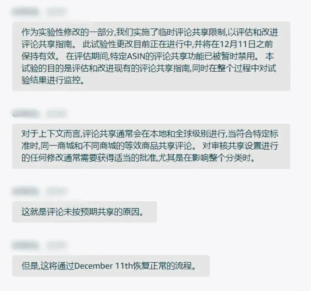 一个月前,很多亚马逊卖家反馈自家产品评论数量突然大幅缩水,有些类目搜索首页的置顶评论直接变成了差评,评论区一夜“血流成河”。当时,亚马逊客服回应称,正在进行一项“改进评论共享指南”的实验性测试:在评估期间,特定ASIN的评论共享功能已被暂时禁用。