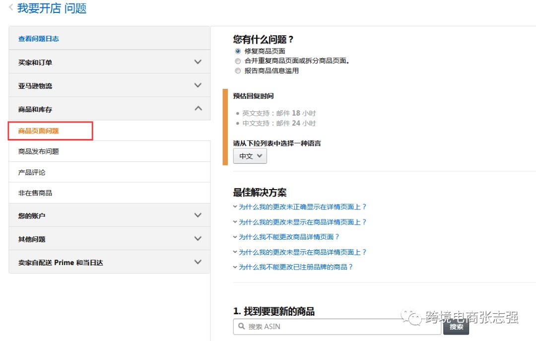 联系商品详情页面团队让其刷新,我们需要重新开case,这里需要注意的是路径问题,那么我们需要在卖家后台—获得支持-联系我们—我要开店—商品和库存—商品页面问题—修复商品页面下进行沟通