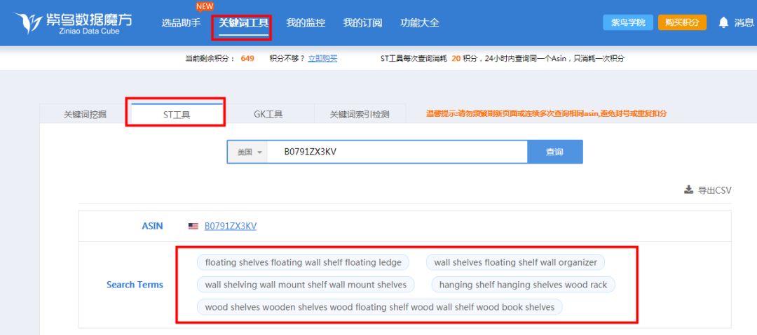 近期也因为亚马逊更换代码的原因,很多第三方平台ST挂了,没有几家还可以查询到结果。但紫鸟现在照样可以查到11个站点-竞品五行。还在为在后台设置什么样的五行关键词发愁的,可以使用紫鸟Search Terms工具,如下图,简单直接。