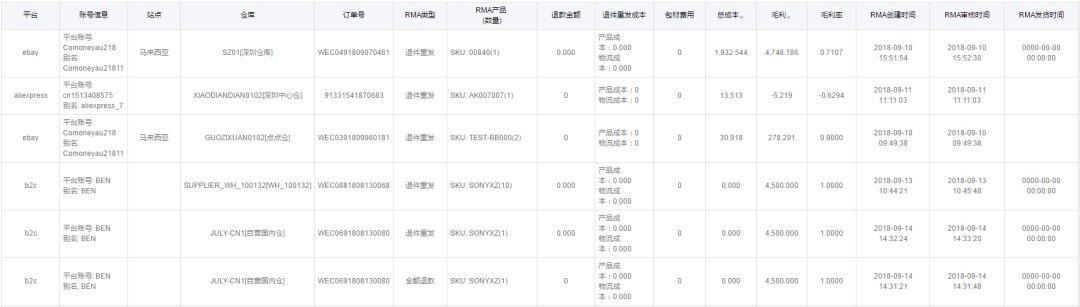 通常,卖家会从品类、仓库、国家、售后人、退货类型、退货数量、退货金额、包材费用、总成本、毛利等数据去统计。然而,实际上并不需要这么复杂,只需统计时间、站点、产品、销售、物流和供应商就可以了。