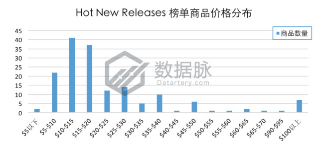 上周Kitchen & Dining品类Hot New Releases榜单商品最高价$349.0,最低价$4.99,平均价格$28.92。骆探长(shujumai.com)发现,本期榜单商品平均价格小幅度上升;有22.40%商品的价格在$10.00-$15.00区间内;还有20.22%商品的价格位于$15.00-$20.00区间内;此外,在该周的Hot New Releases榜单中,有7款商品价格高于$100,占比达3.83%。