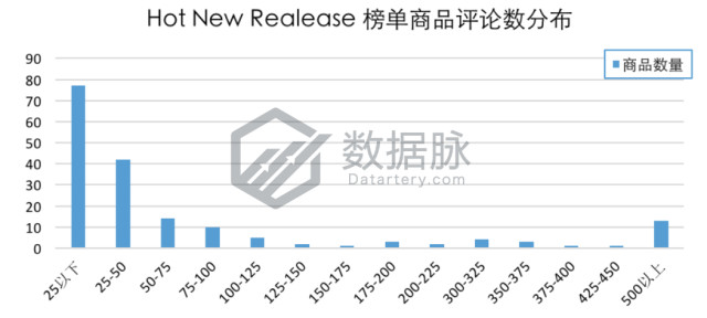 在上周登榜Kitchen & Dining品类Hot New Releases榜单的商品中,单个商品拥有的最大评论数为5711.0条,最小评论数为 0.0条,平均评论数205.33条,评论平均星级4.43星。骆探长(shujumai.com)注意到,相比上期分析,榜单商品的平均评论数相差无几,而平均星级增加0.05星;有42.08%的上榜商品评论数依然分布在25条以内;同时,在登榜的商品中有13款商品评论数在500条以上,占比达7.10%。