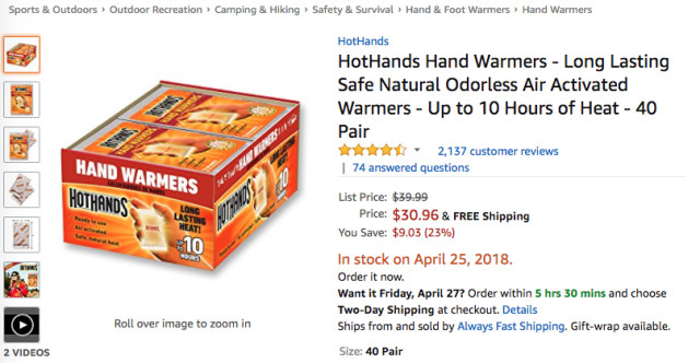 品牌HotHands的一次性暖手袋,多次跻身榜单前五,以平均排名4.57位列综合排名第三;