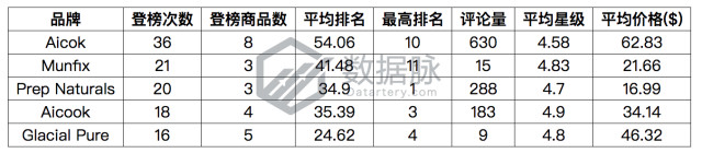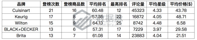 根据上周 Movers & Shakers 榜单上各个品牌下商品的登榜次数,我们对登榜的品牌进行了排序,其中排名靠前的五个品牌如下所示: