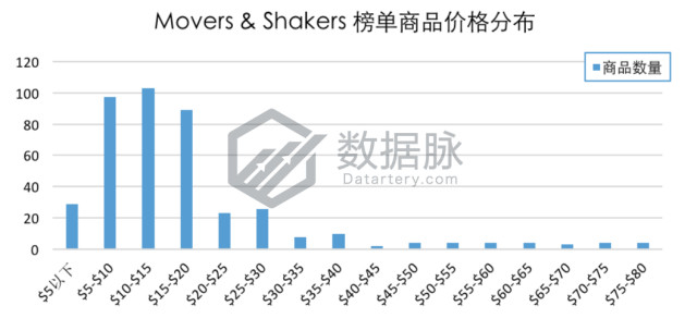 上周Kitchen & Dining品类Movers & Shakers榜单商品最高价$169.99,最低价$1.16,平均价格$22.5。骆探长(shujumai.com)发现,相比上期分析,商品平均价格稍有下降;其中价格位于$10.00-$15.00区间内的商品数量最多,占比达26.02%,另有22.15%的商品价格在$5.00-10.00之内;此外,还有10款商品的价格在$100以上,占比2.15%。