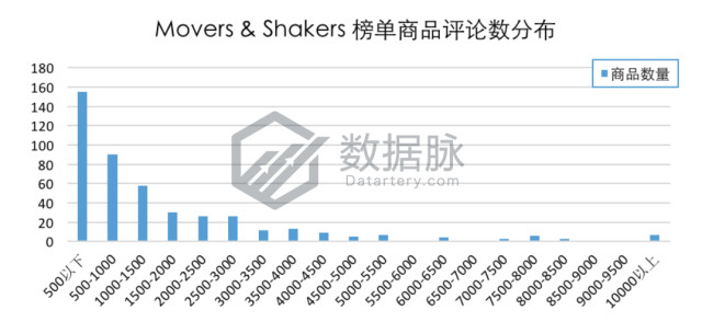 在上周登榜Kitchen & Dining品类Movers & Shakers榜单的商品中,单个商品拥有的最大评论数为27847.0,最小评论数为0.0条,平均评论数1662.69条,评论平均星级4.37星。骆探长(shujumai.com)发现,相比上期分析,平均评论数稍有下滑,平均星级增加0.01星;在上榜商品中,有33.05%的商品评论数在500条以下;有19.19%的商品评论数位于500条至1000条以内;多达7款商品的评论数超过10000条,占上榜商品总数的1.49%。