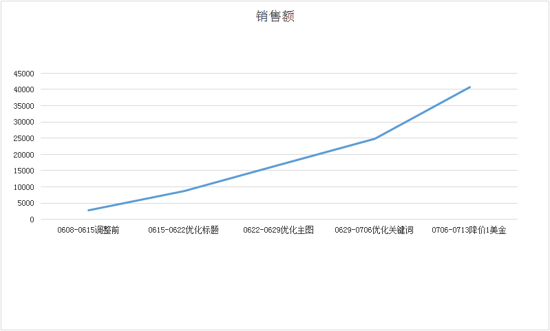 另外,为了让数据更直观,你们可以通过折线图的方式,找到优化的重中之重,即影响此次订单最重要的步骤,方便后续产品抓重点去做优化笔记。左侧是销量或者销售额刻度,下面是优化动作维度,上升最陡的一块就是影响订单最大的优化决策。