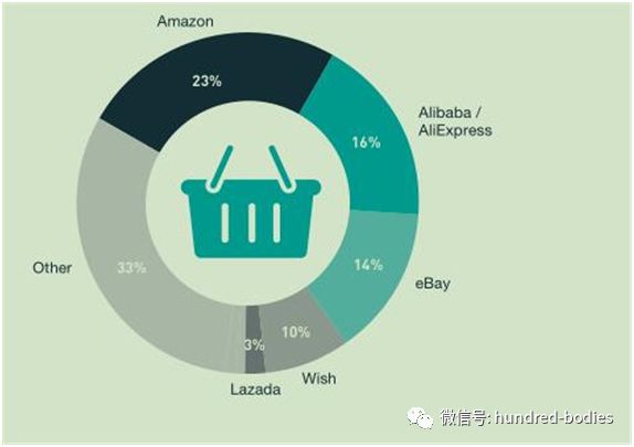 受访者进行跨境购物最多的平台是亚马逊(23%),其次是阿里巴巴速卖通(16%),然后是eBay(14%)和Wish(10%)。