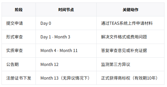 补正通知(Office Action):若文件缺失或格式错误,需在6个月内答复,否则视为放弃申请。