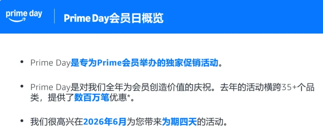Prime Day各项活动的提报时间均较2025年大幅提前,于2026年3月24日开放Z划算和秒杀提报,2026年4月6日开放Prime专享价格折扣提报。