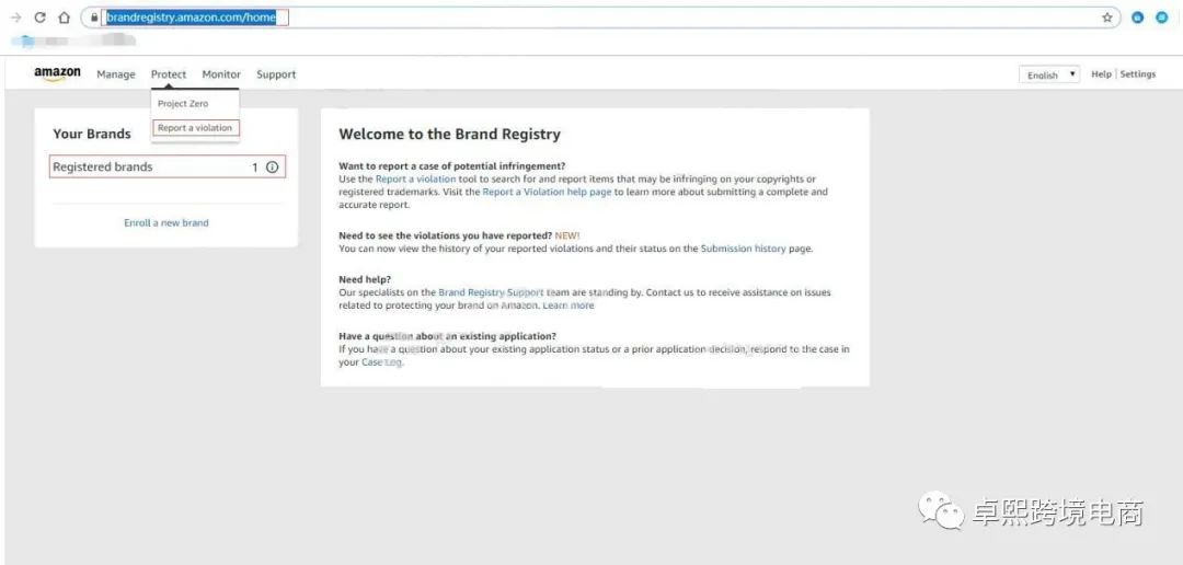 一、首先登录Amazon账户,打开投诉链接:https://brandregistry.amazon.com/home,选择project,进入Report a violation。