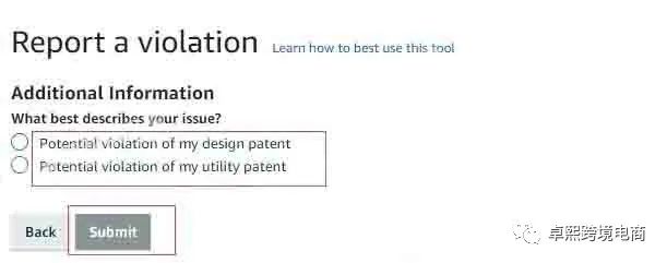 五、根据实际情况,选择外观专利或发明专利,点击提交;