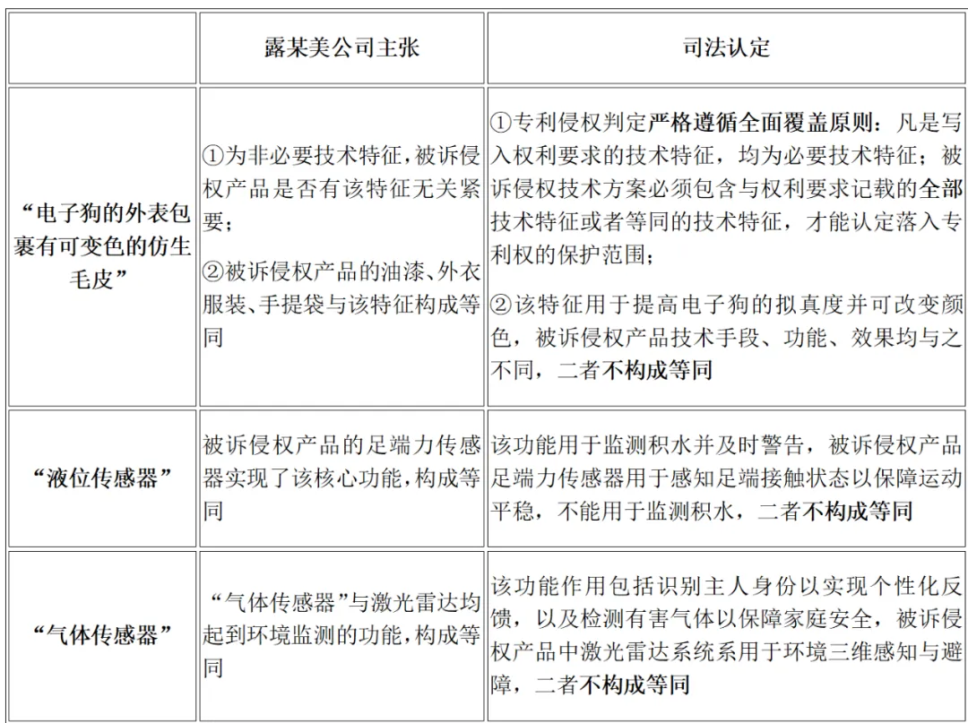 但其如意算盘最终落空,杭州中院一审认定,宇树科技产品缺少涉案专利中 “液位传感器”“气体传感器” 和 “可变色的仿生毛皮” 三项关键技术特征,不构成侵权;最高人民法院终审驳回上诉,维持原判,并在判决书中直接批评原告 “既精心算计、又反复无常”。