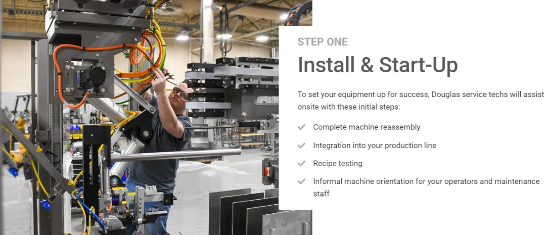 为此,Douglas Machine提供从设备交付、现场安装、操作培训、性能验证到持续优化的全流程支持,并承诺交付后90天内完成现场验收测试,确保设备达到预期生产效率。很多人把这理解为“售后完善”,但本质上,这是在降低客户的启动风险。当客户在前90天就建立信心,后续合作的心理门槛自然会降低。