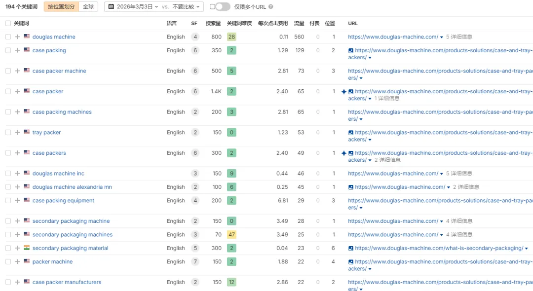Douglas Machine重点布局包装设备及行业相关关键词,既覆盖高流量词,也深耕长尾词。其策略并非单纯追求流量规模,而是围绕客户真实搜索场景,进行内容延展,通过技术文章与行业资源页面解答问题。