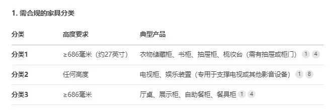 AS/NZS 4935专门针对儿童在独立式家具上攀爬的危险的稳定性能。