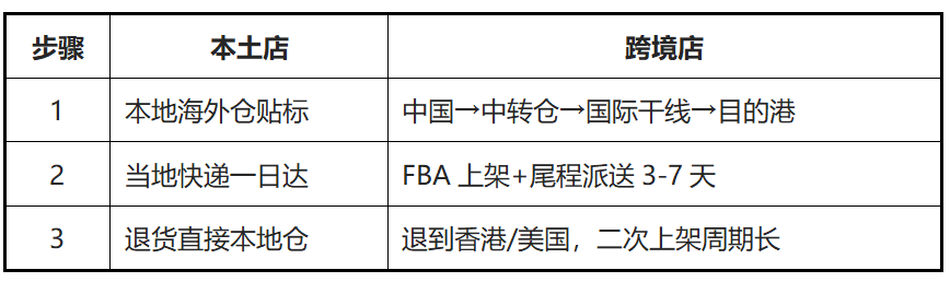 四、物流链路:本地仓一日达 VS 跨国四段式