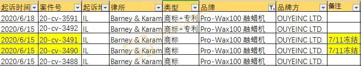 据SellerDefense消息,以下均为Pro-Wax100发起的全部案件,其中20-cv-3490、20-cv-3491已经开始冻结: