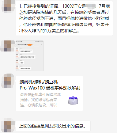 爆料卖家告诉侃妹:一款夏日畅销品Pro-Wax100融蜡脱毛机,被无良国人恶意伪造使用证明,在美国抢注商标和外观专利,然后勾结美国流氓律所,对大批量中国卖家进去地毯式侵权投诉,肆意敲诈勒索无辜的中国外贸和跨境电商从业人员!自己也是数千的受害者之一。