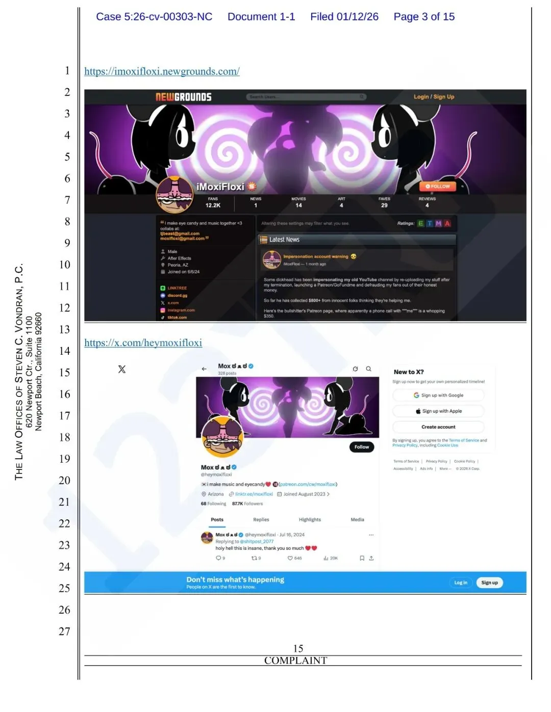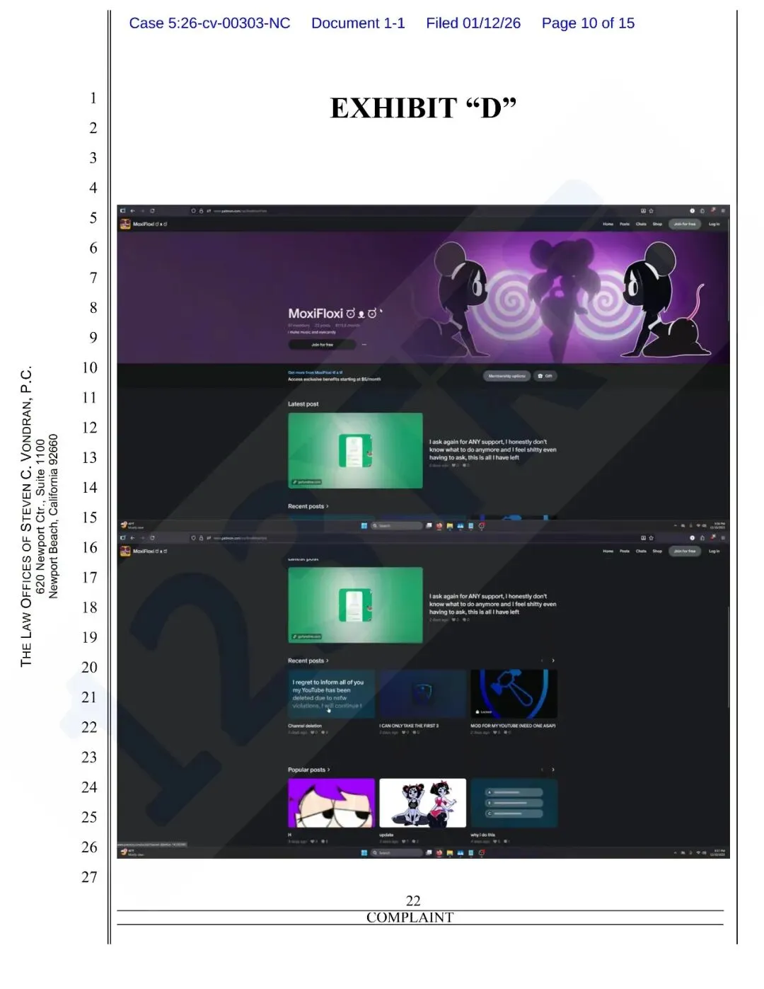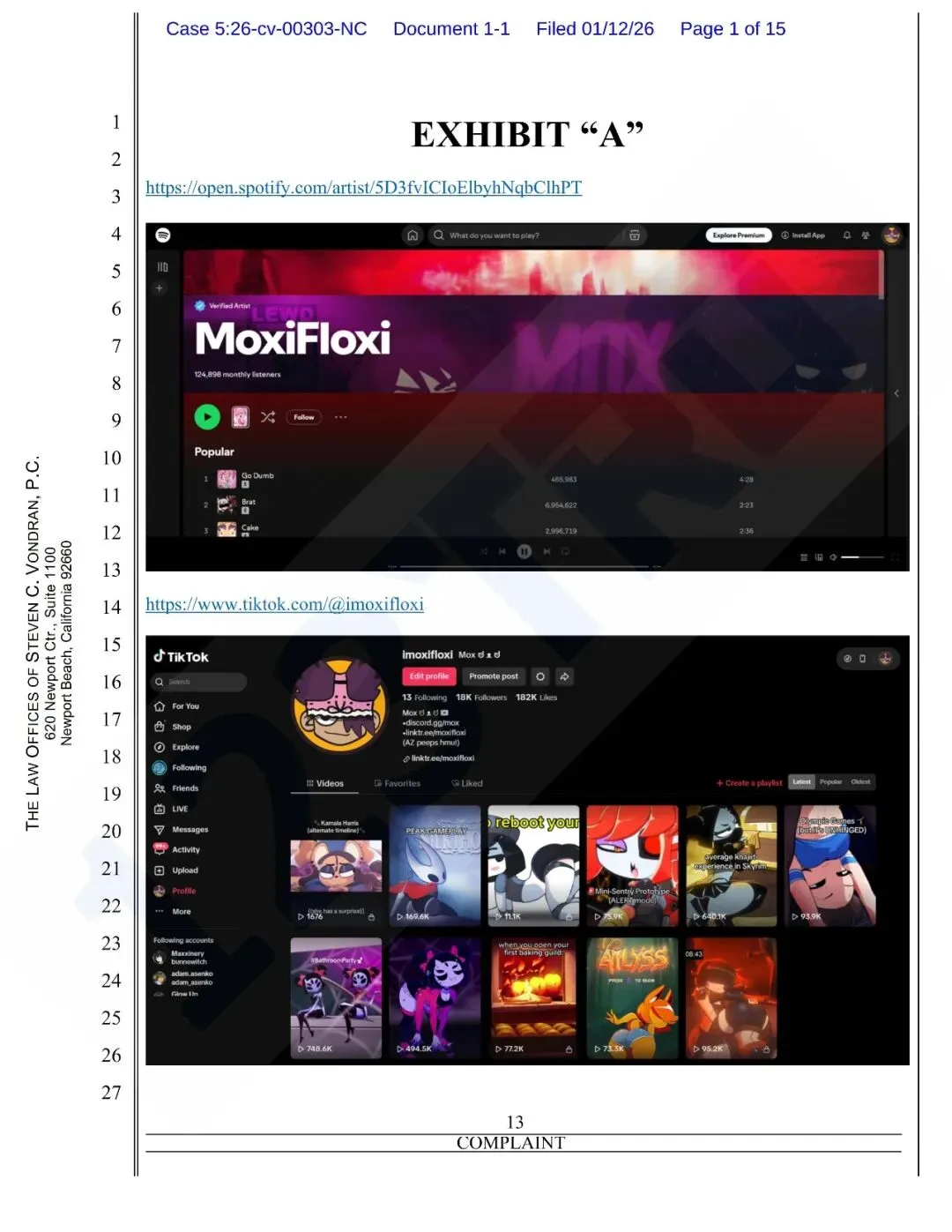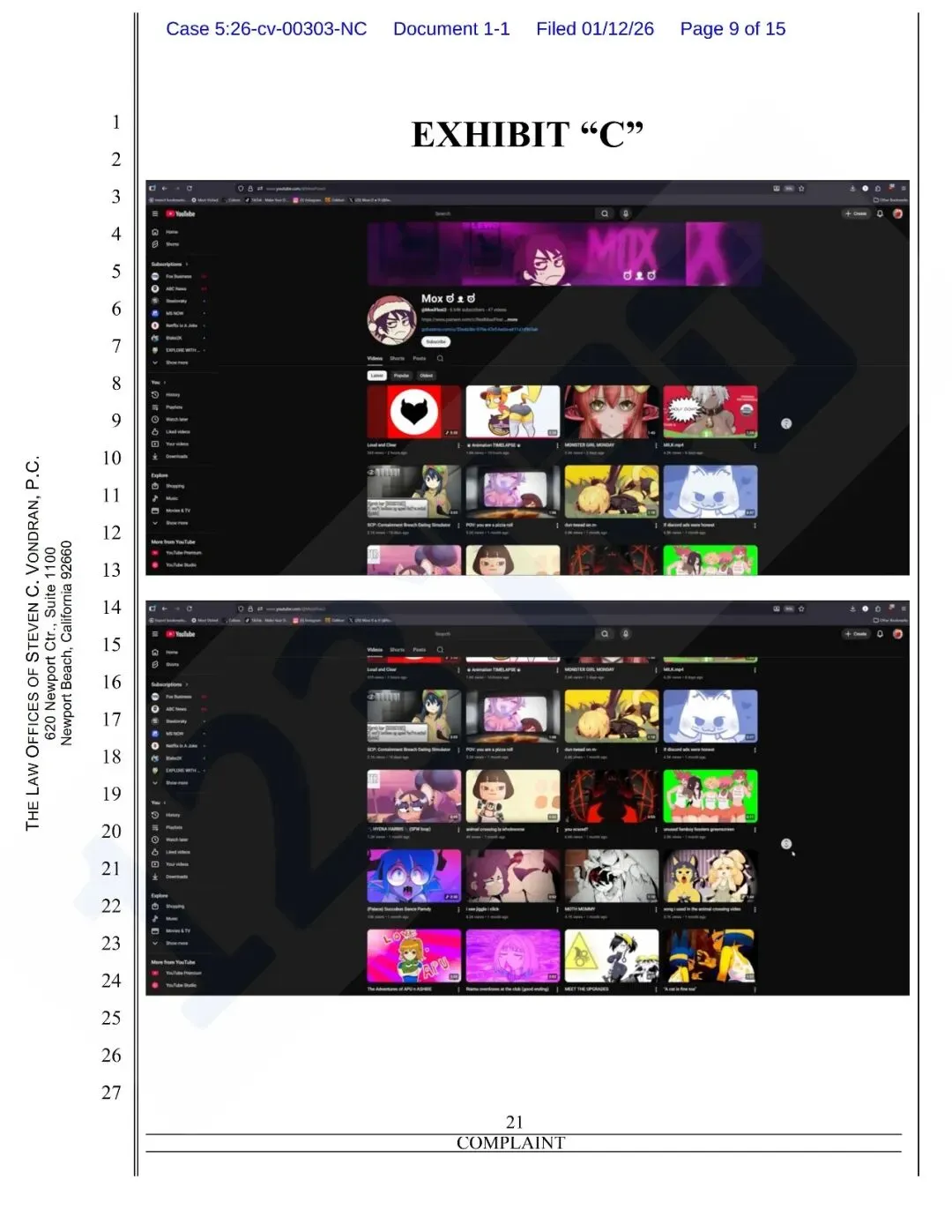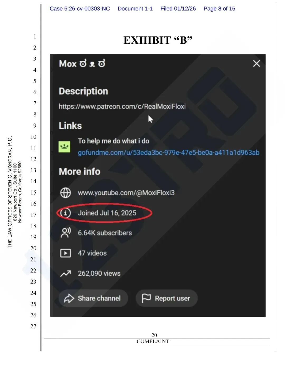原告发现被告未经授权,用原告的职业名“Moxifloxi”开了一个 YouTube 频道,搬运原告的作品