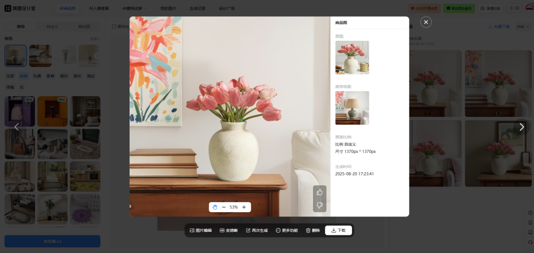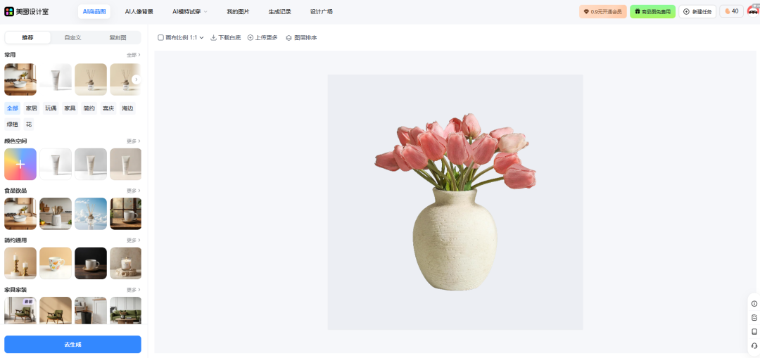今天我们以陶瓷花瓶产品为例,教大家如何通过美图设计室AI商品图功能,快速制作符合COSMO算法的产品主图。
