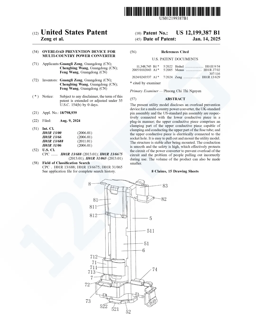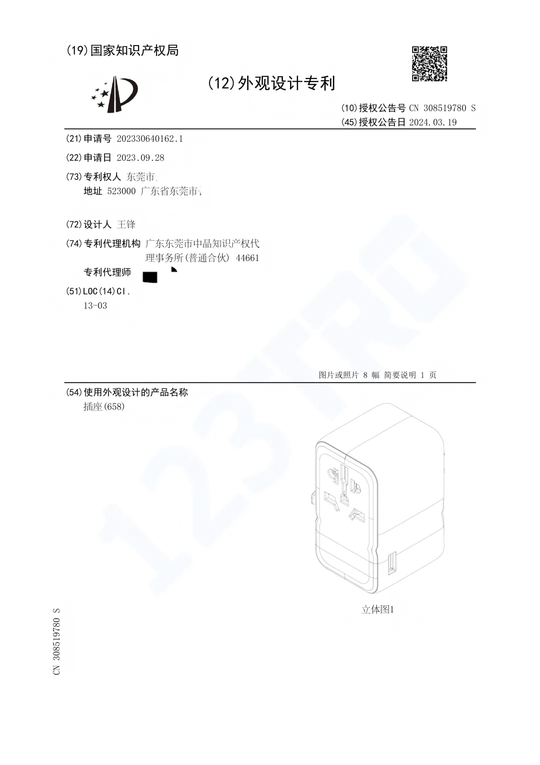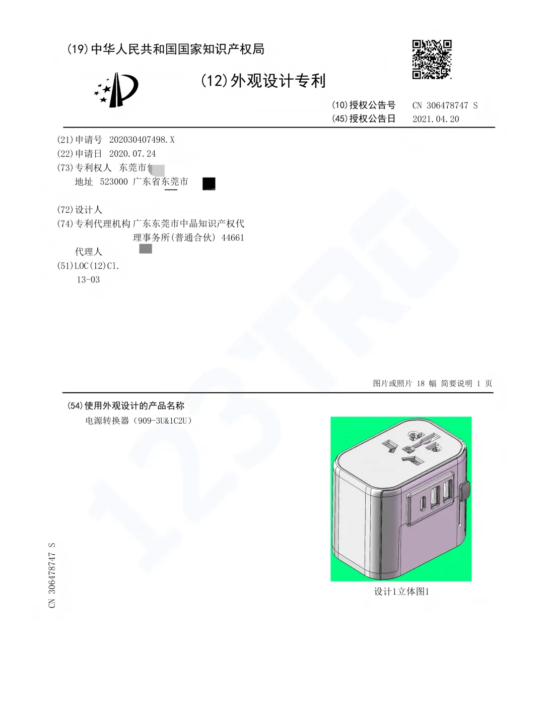 原告名下还有4条美国外观专利,以优先权的方式申请,且都和插座和转换器有关