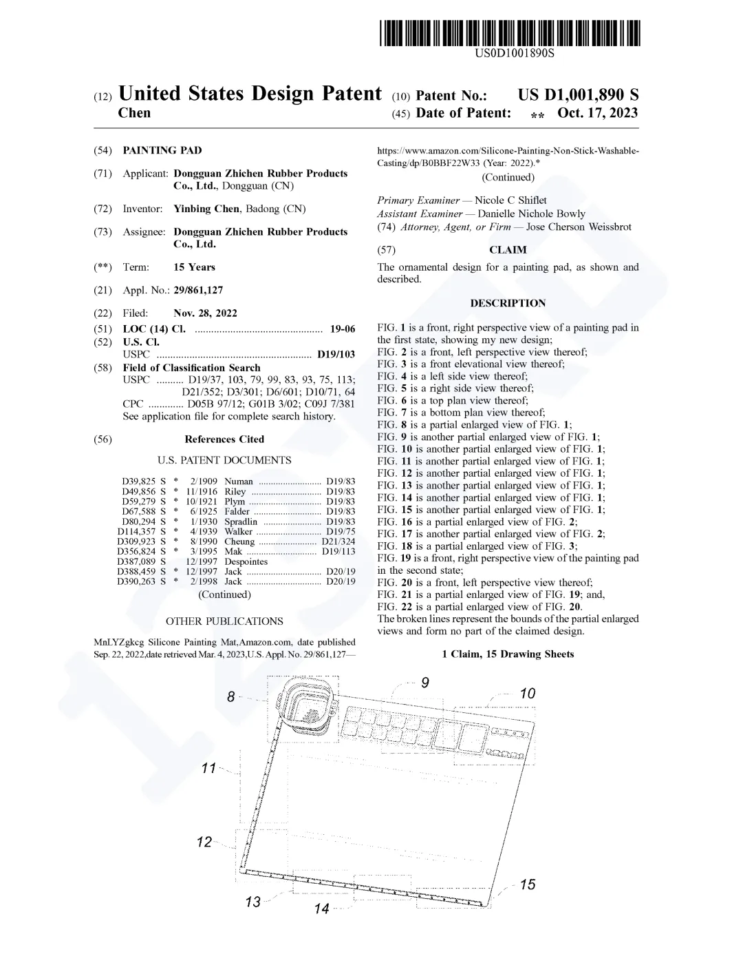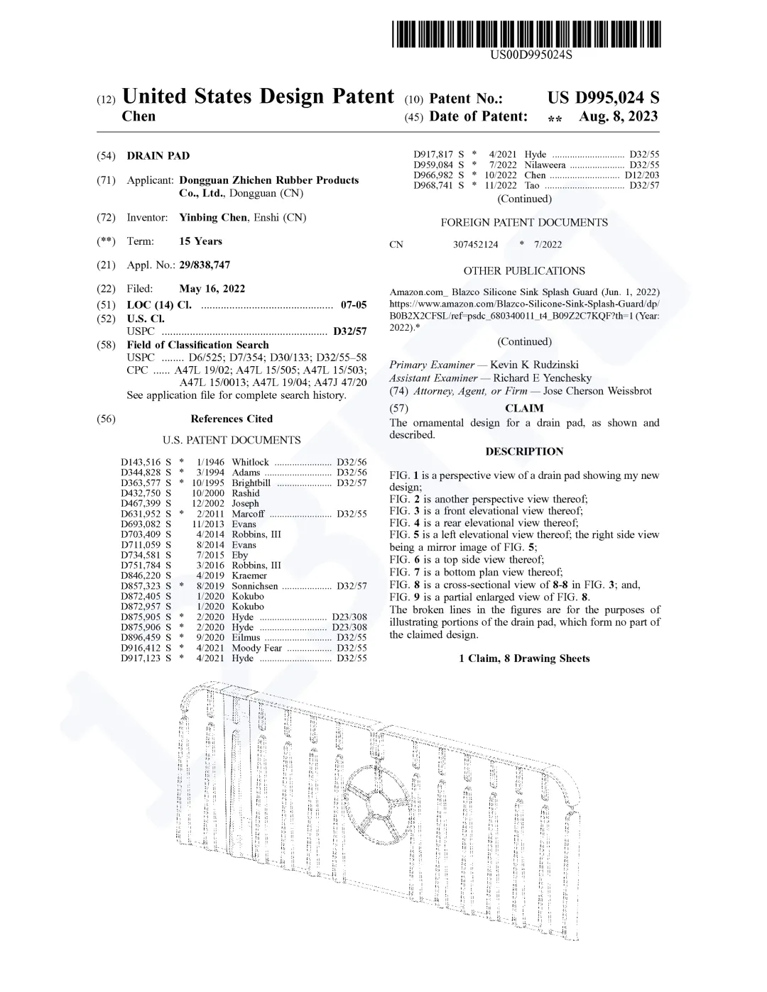 原告名下还有2条美国的外观专利,分别和沥水垫、画画垫有关