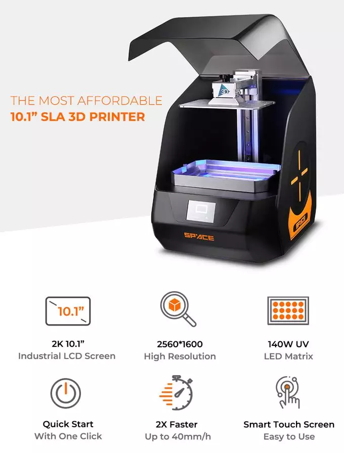 这是一款价格最实惠的10.1英寸LCD SLA 3D打印机,具有大体积,快速打印和超高分辨等特点。SPACE 3D将SLA打印的质量和精度带到了桌面,并且超高性价比,任何人都可以进行DIY3D打印。