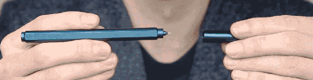极简主义的中性笔,具有磁性自动对准机制和创新的笔帽,它会发出喀嗒声、吸引、对齐,神奇的精确对准是通过笔两端的强力4极钕磁铁实现的。