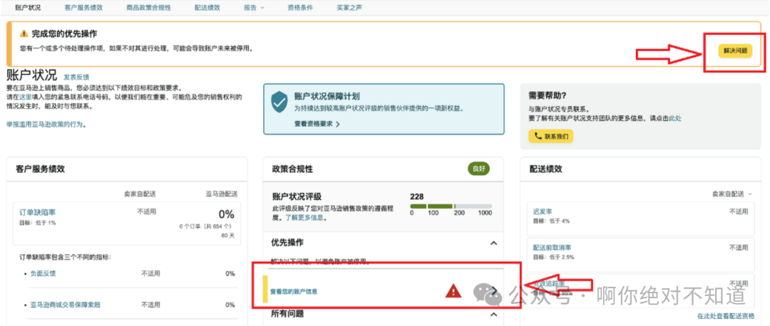 与此同时,在您的账户健康页面,您将会看到一个提示“完成您的优先操作”的横幅,以提醒您有未完成的操作。