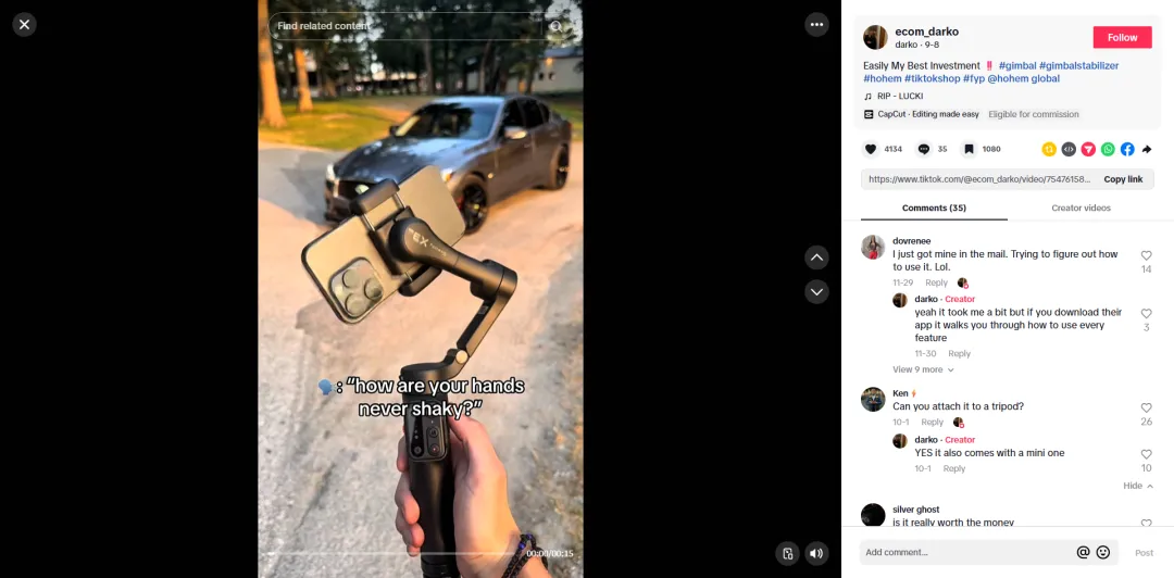 1. 代工依赖下的品牌空白:长期做代工让Hohem缺乏品牌认知,海外用户对“Hohem”毫无了解,甚至不知道这是一个中国品牌。在亚马逊、Best Buy等海外主流渠道,面对大疆等成熟品牌,新品牌的信任建立难上加难;