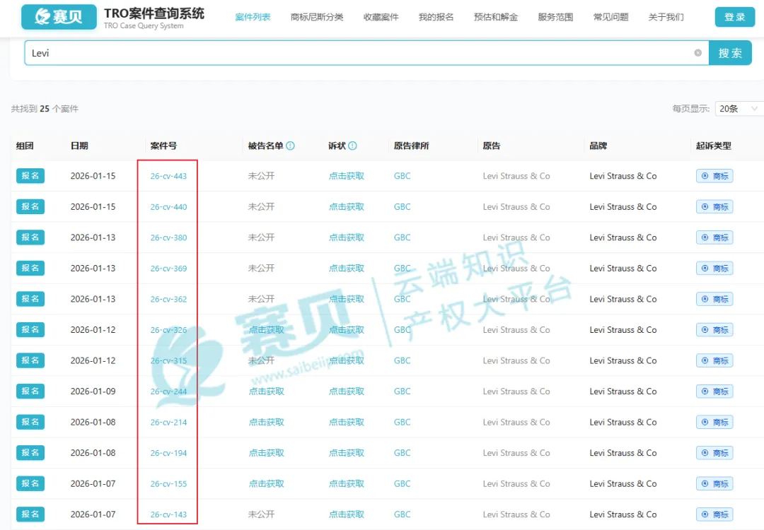 【26-cv-443】12起TRO诉讼直指服装类跨境卖家, Levi’s李维斯商标维权风暴!