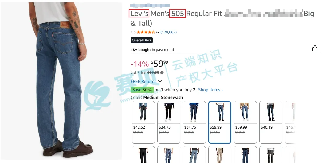 赛贝提醒跨境电商卖家,如果你的产品上使用了上述任何一种标识,哪怕只是模仿了弧形缝线、布标样式,或者在标题、宣传中滥用LEVI’S®、501 等词,都可能触发侵权。